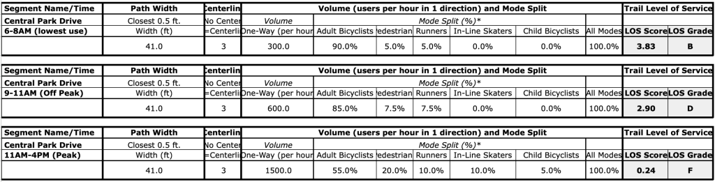 Central Park Drive – Shared Use Path Level of Service (SUPLOS) Calculator