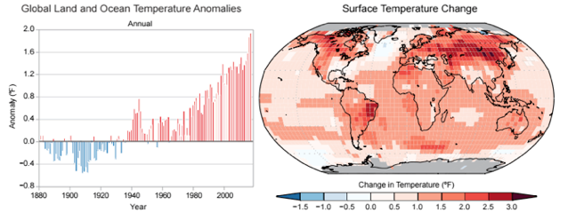 [3] “Continued growth and CO2 emissions over the century and beyond would lead to an atmospheric concentration not experienced in tens to hundreds of millions of years. There is a broad consensus that the further and the faster the earth system is pushed towards warming the greater the risk of unanticipated changes and impacts some of which are potentially large and irreversible.” Fourth National Climate Survey, U. S. Global Chance Research Program, http://tinyurl.com/yc9aer9m