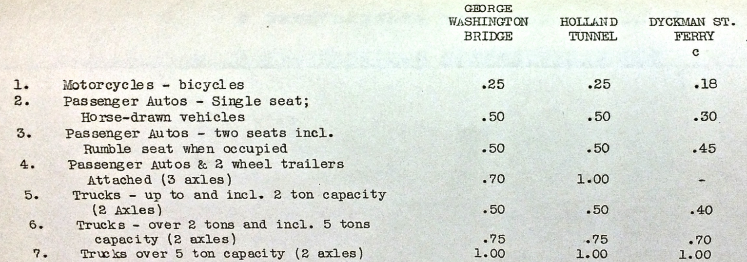 [13] Comparative tolls for trans-Hudson crossings, 1931, Port Authority of New York