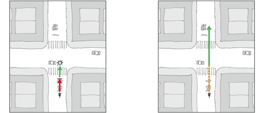 Enabling cyclists to enter an intersection before a green light gets them out of truck drivers’ blind spots, safely past blocked bike lanes and ahead of cars turning left—the most common scenarios that put cyclists at risk.