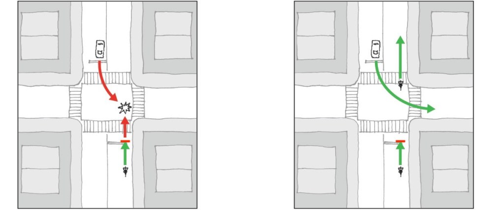 “The leading walk signal is an excellent way to protect both pedestrians and cyclists. It can prevent the danger from right-turning motorists.