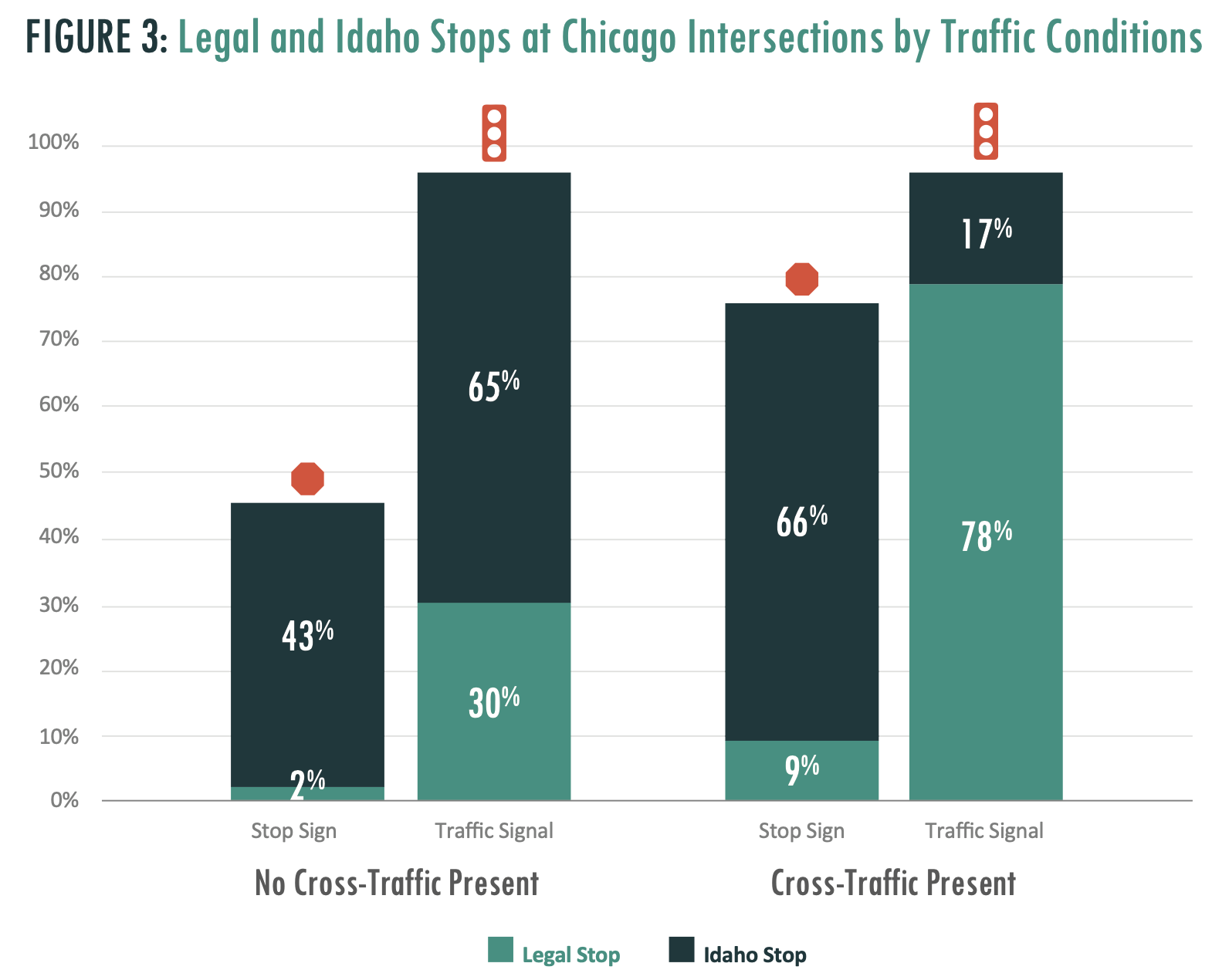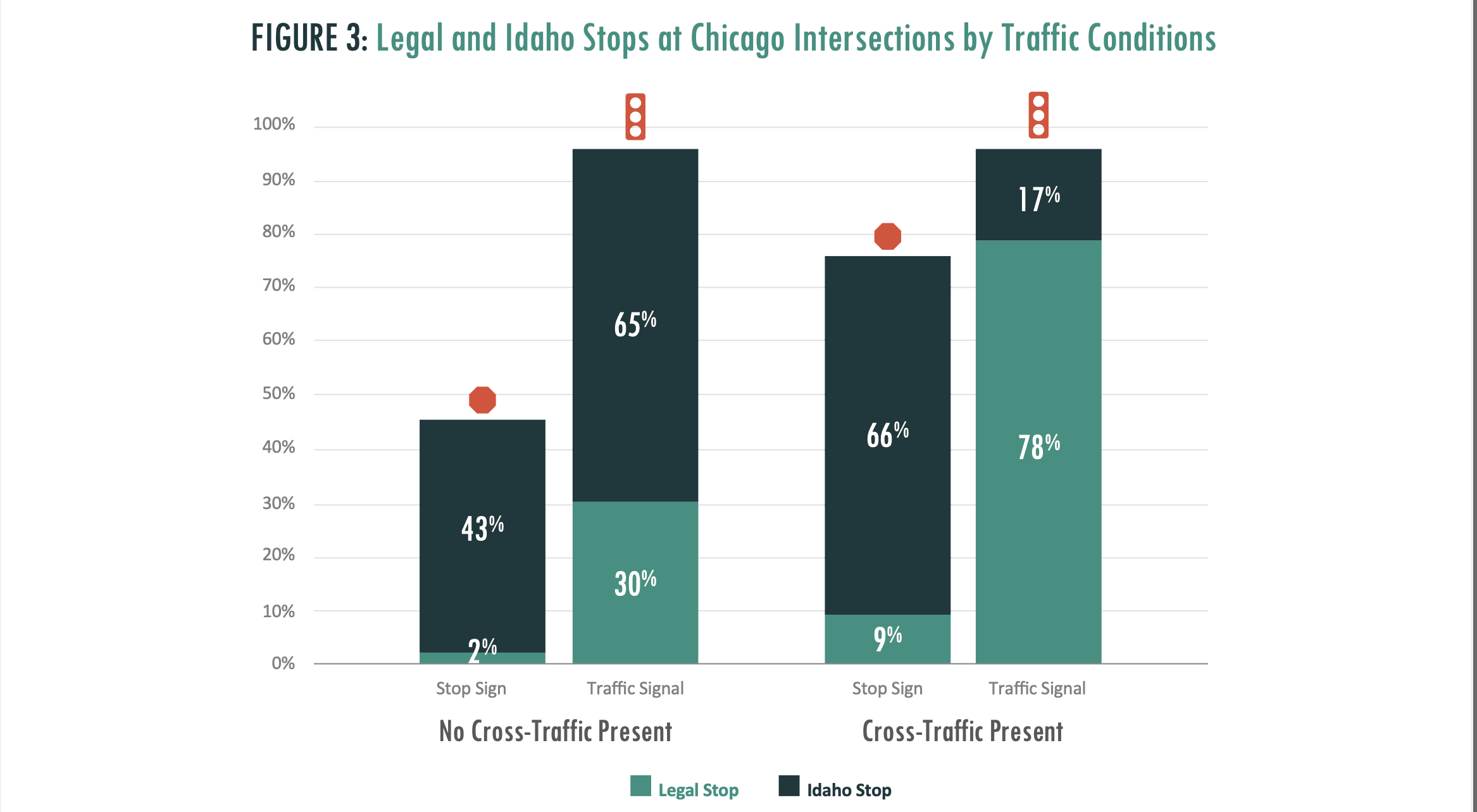 For context, a 2016 study in Chicago determined that 95% of cyclists approaching a signaled intersection either stopped for the full duration of the red light, or stopped-and-restarted, depending on traffic conditions. Only 5% continued without stopping.