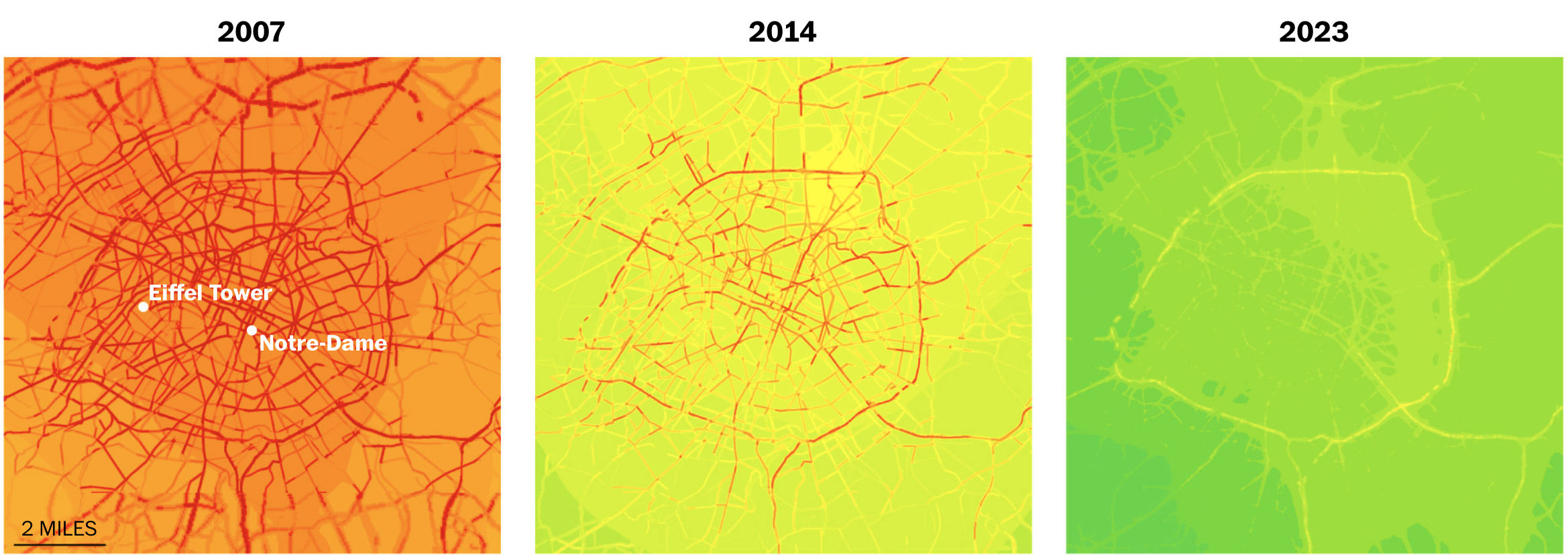 PM 2.5 particulant levels across Paris. Airparif via Washington Post.