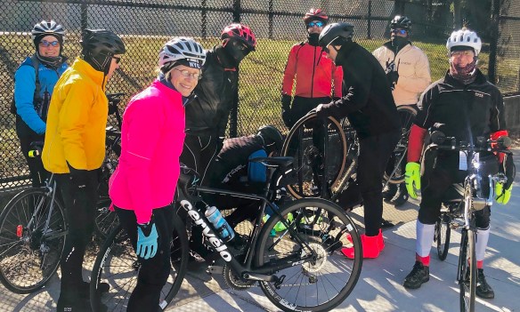 Wind chill is the big contributor to cyclist discomfort. The most effective way to mitigate is to ride with the wind. Because the prevailing wind is out of the west, select routes that travel west-to-east. Take a train at the start and/or finish.