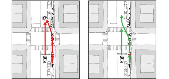 In 2017, NYCDOT found that 89% of city bicyclists killed or seriously injured (KSI) in vehicle crashes between 2004-2016 were struck by drivers at intersections.