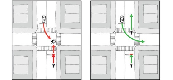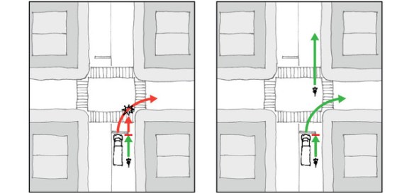 - De-conflict from turning traffic