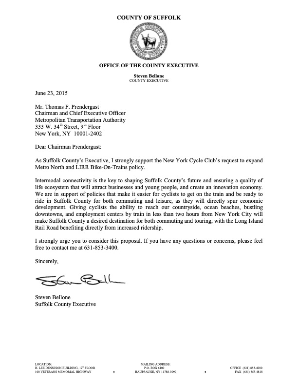 Finally, mindful of the hundreds of millions of dollars cyclists contribute to their region’s economies and that half of NYC households don’t own cars, you have letters of support from Ulster, Dutchess, Putnam and Westchester counties (below).