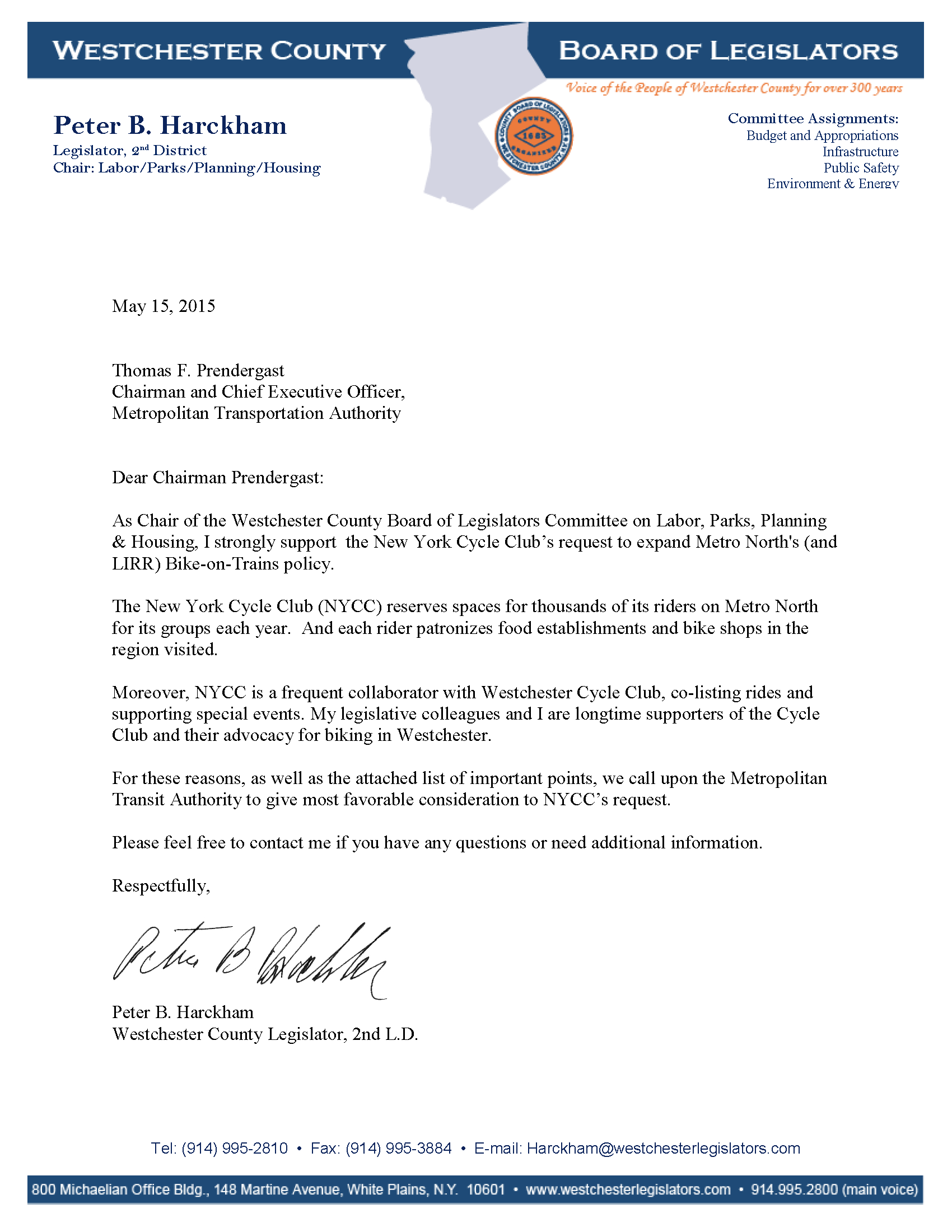 Finally, mindful of the hundreds of millions of dollars cyclists contribute to their region’s economies and that half of NYC households don’t own cars, you have letters of support from Ulster, Dutchess, Putnam and Westchester counties (below).