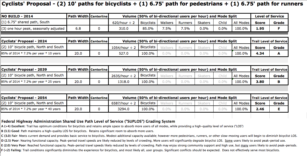 – Estimated annual capacity of Cyclists’ Proposal is 5,000,000 trips per year, or ten times current use of 500K bike trips per year.