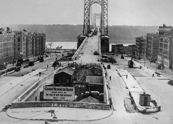 19 Oct 1931, New York, New York, USA — 10/19/1931-New York- THE ROAD’S CLEAR…That will be the signal when the new Washington Memorial Bridge over the Hudson River is opened with appropriate ceremony. In the meantime, here’s a new and unusual view of the structure from the New York end, showing the underground approach as well as the one on the surface and the exit. That’s New Jersey over in the distance. — Image by © Bettmann/CORBIS